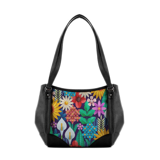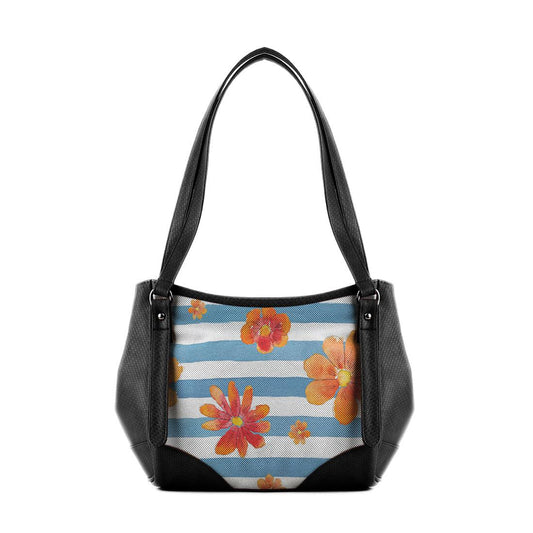 Beige Leather Tote Bag Flowers