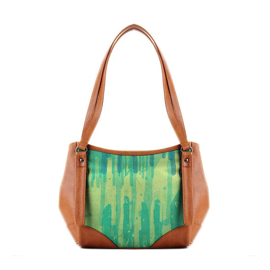 Leather Tote Bag Green Leaves - CANVAEGYPT
