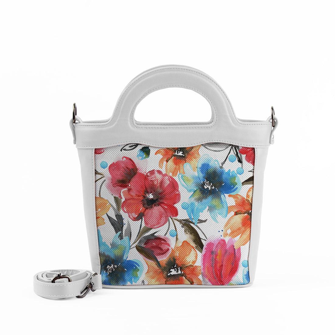 White Top Handle Handbag White Floral - CANVAEGYPT